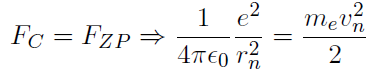 Der Abstand eines Elektrons zum Kern kann im Bohrschen Atommodell gut abgeschätzt werden. Dazu muss man sich vergegenwärtigen, dass beim Kreisen des Elektrons um den Kern einerseits die Coulombkraft, und andererseits die Zentripetalkraft wirkt. Ein Gleichsetzen der Kräfte ergibt