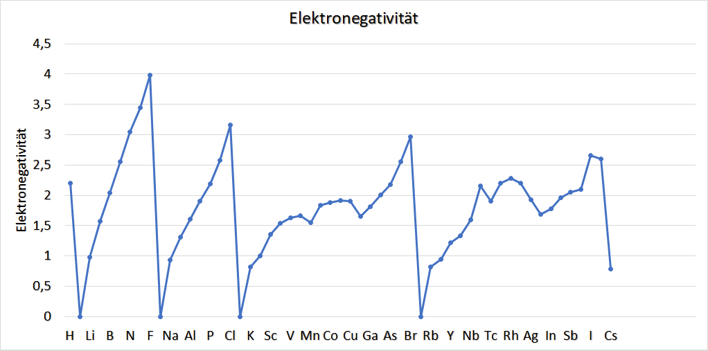 (Anm.: Die Edelgase werden bei der Betrachtung der Elektronegativität herausgenommen, da diese [quasi] als unreaktiv angesehen werden)