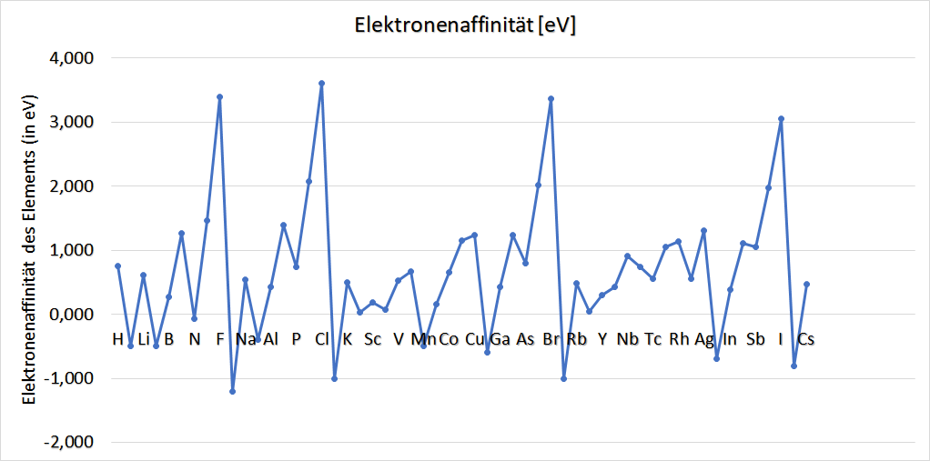 Die Elektronenaffinität ist damit jene Energie, die frei wird, wenn ein Atom ein Elektron aufnimmt.