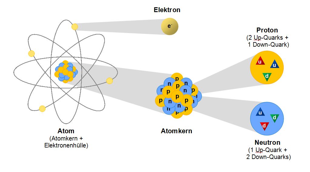 Protonen und Neutronen, die Bestandteile des Atomkerns, sind aus Quarks aufgebaut. Zu den Quarks der ersten Familie zählen Up- und Down-Quarks. Charm- und Strange-Quarks sind die Quarks der zweiten Familie, und schließlich bilden Top- und Bottom-Quarks die Mitglieder der dritten Familie.
